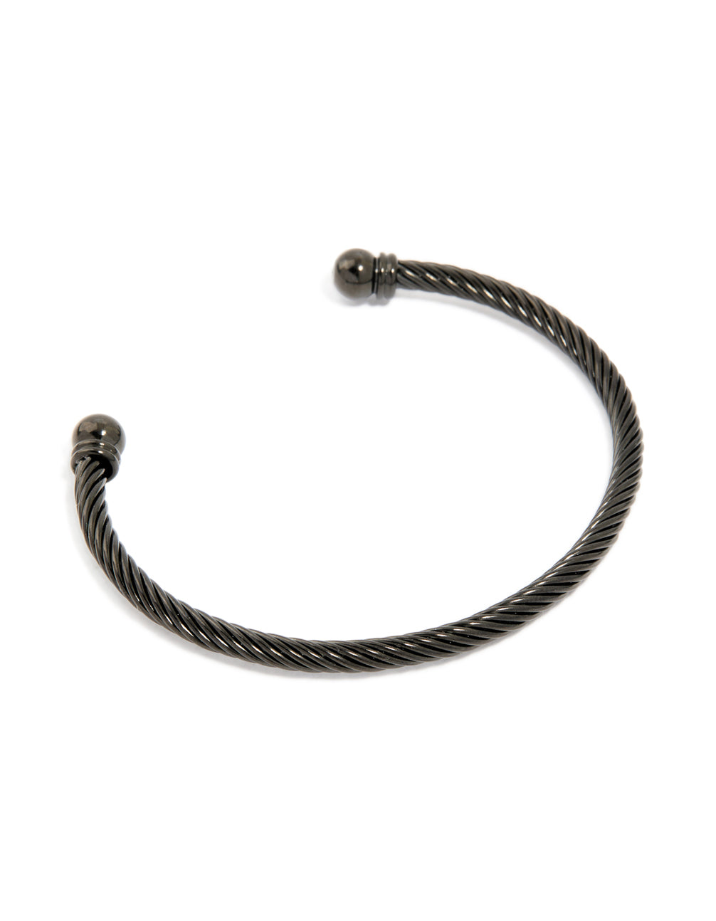Mens Waterproof Black Stainless Steel Wire Twist Cuff Bracelet