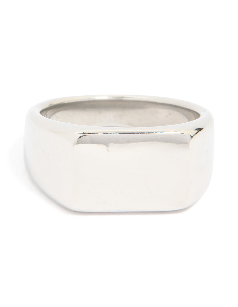 Mens Waterproof Stainless Steel Rectangle Signet Ring