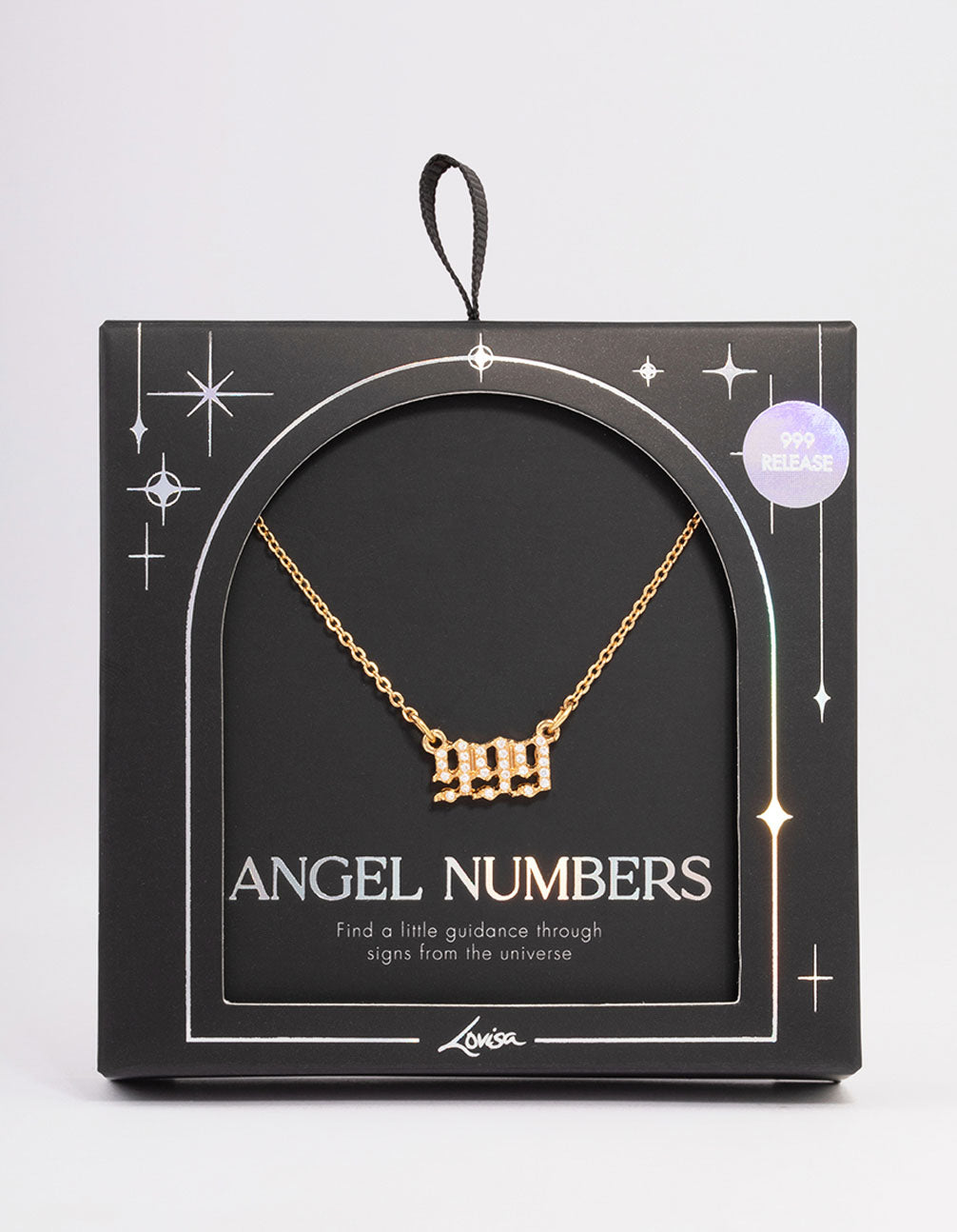 Gold Plated Cubic Zirconia 999 Angel Number Pendant Necklace