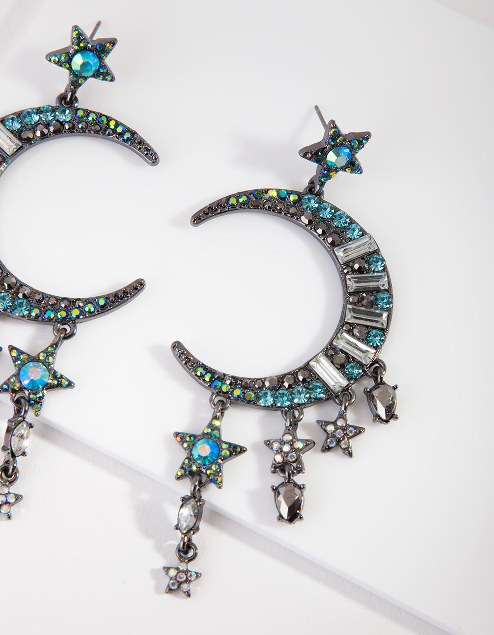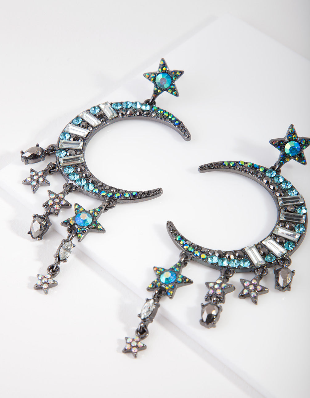 Elevate your outfit with this gunmetal-toned blue iridescent celestial drop earring.