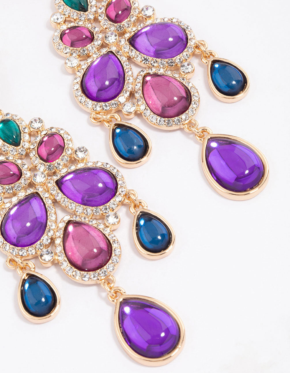 - Style these Gold Multi Stone Stud Earrings with a chunky statement necklace for a glamorous evening look.