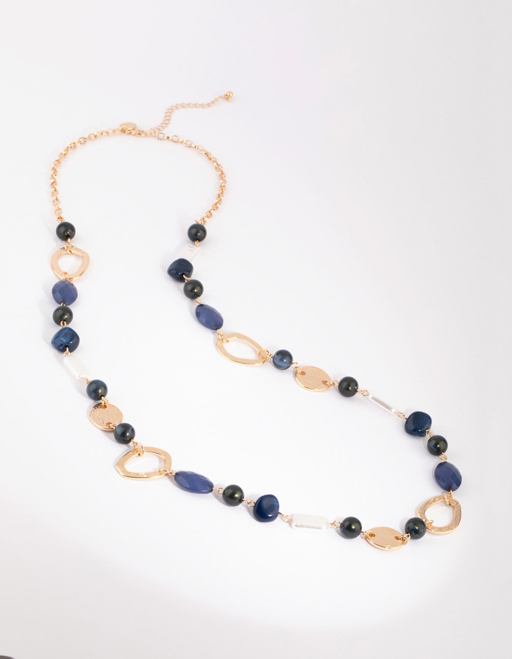 Gold & Blue Pearl & Bead Long Necklace Gold & Blue Pearl & Bead Long Necklace Gold & Blue Pearl & Bead Long Necklace