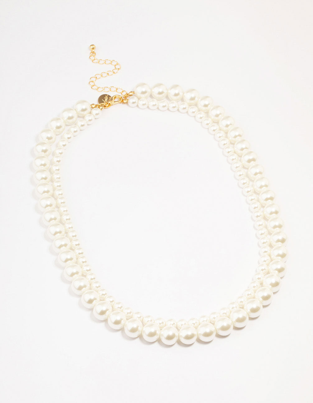 Elevate your stack with this chunky, layered freshwater pearl necklace. This necklace features two rows of freshwater pearls in graduating sizes, perfect for adding dimension to your neckline.