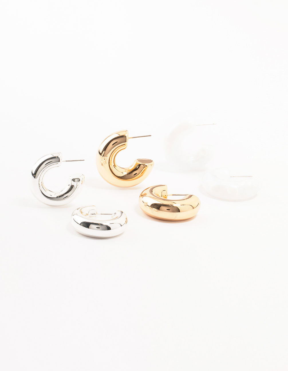 Mixed Metals Chubby Hoop Earrings 3-Pack