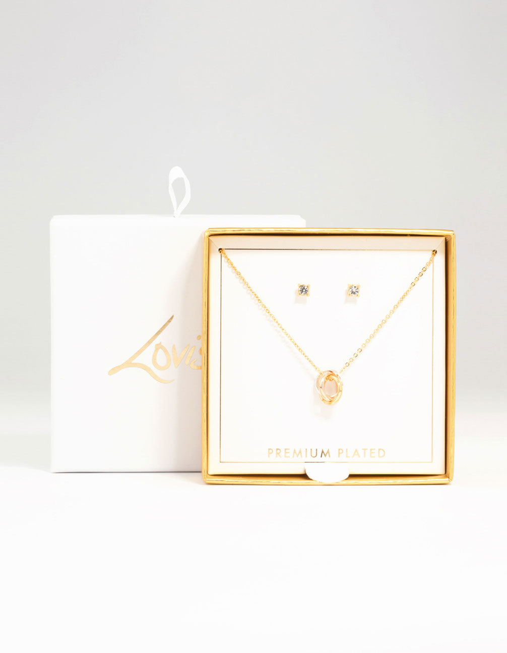 Mixed Metals Ring Necklace & Stud Earrings Set Mixed Metals Ring Necklace & Stud Earrings Set Mixed Metals Ring Necklace & Stud Earrings Set