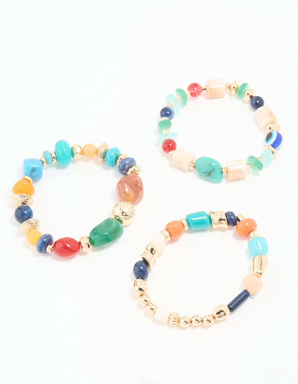 Multicoloured Acrylic Beaded Stretch Bracelets 3-Pack