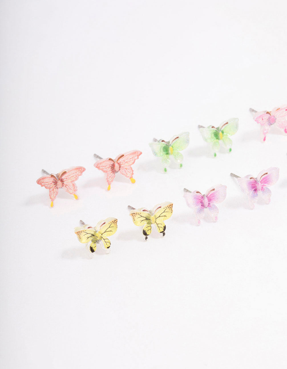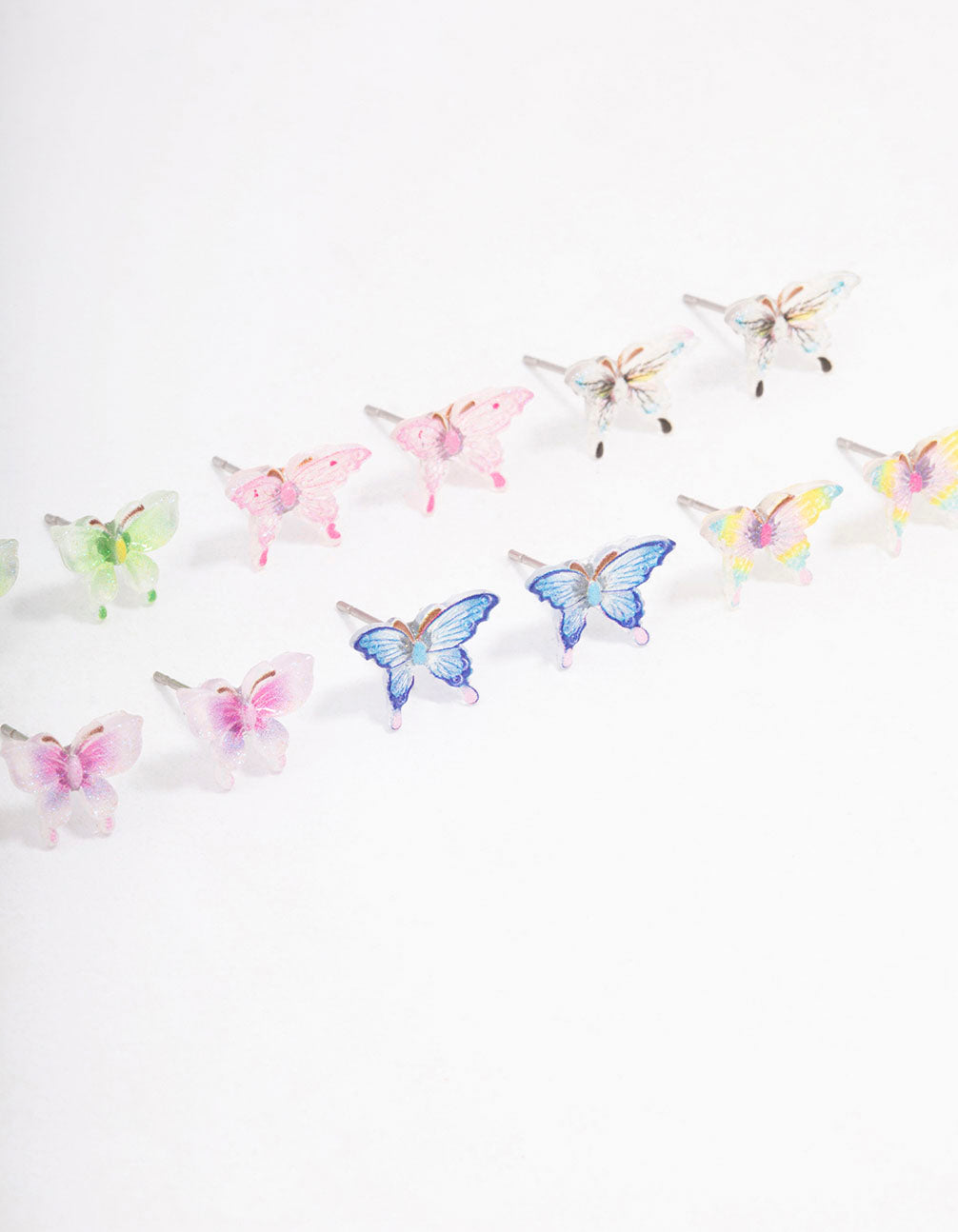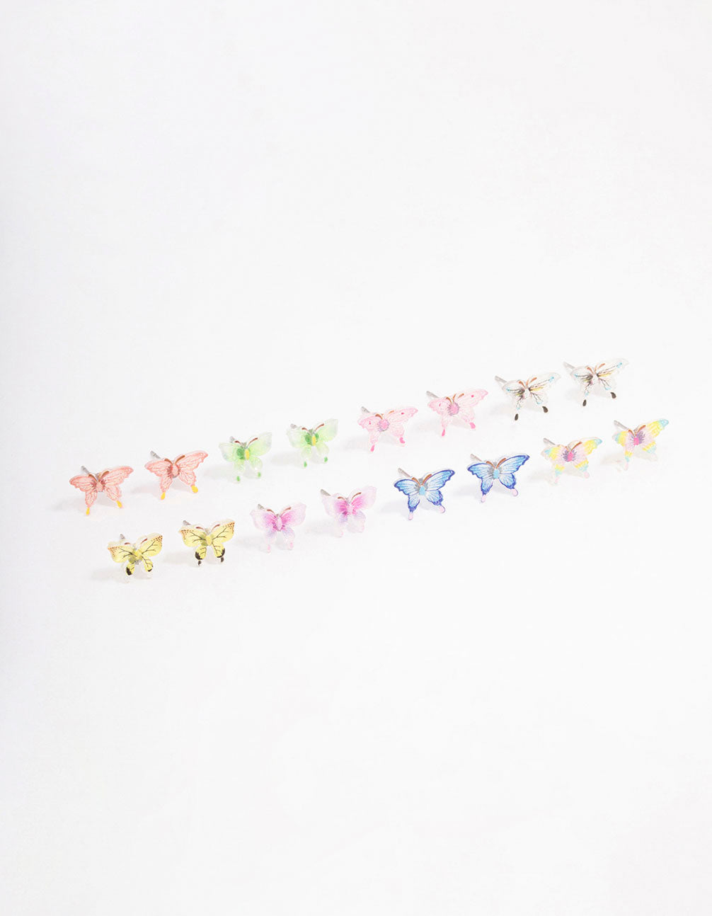 Enter your butterfly era and add a whimsical finish to your ear stack with this pack of eight butterfly stud earrings in a range of pastel colours.