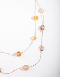 Gold Peach Facet Bead & Frost Stone Necklace