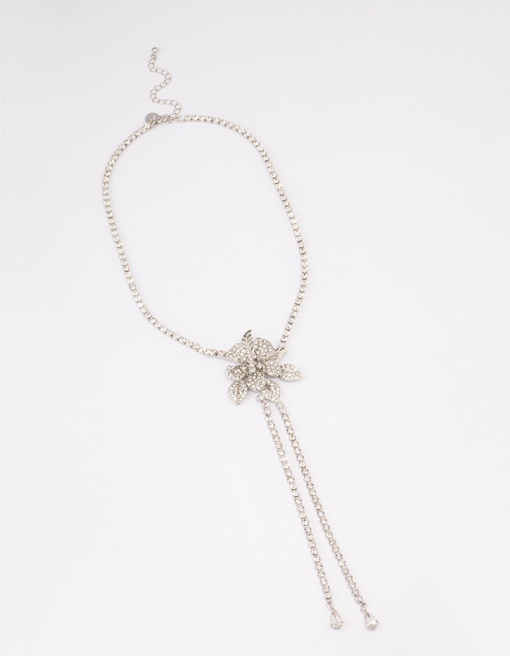 • Style this Silver Cupchain Diamante Flower Necklace with a pair of statement floral studs for a cohesive, glamorous finish to your look.