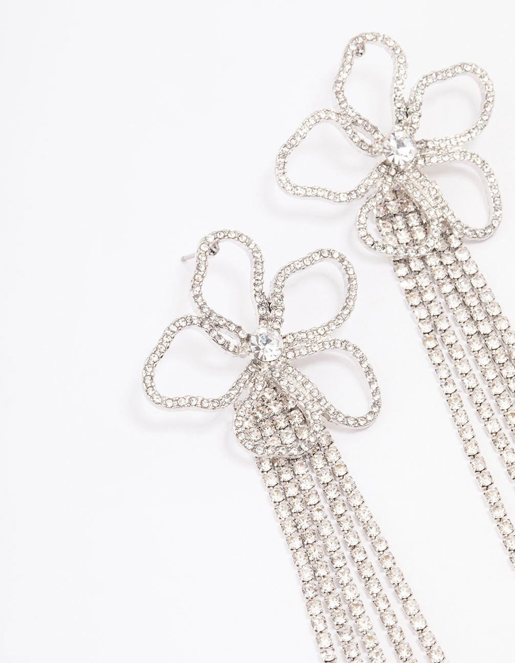 Discover our collection of event and party ready pieces, including these Silver Flower Cup Chain Drop Earrings.