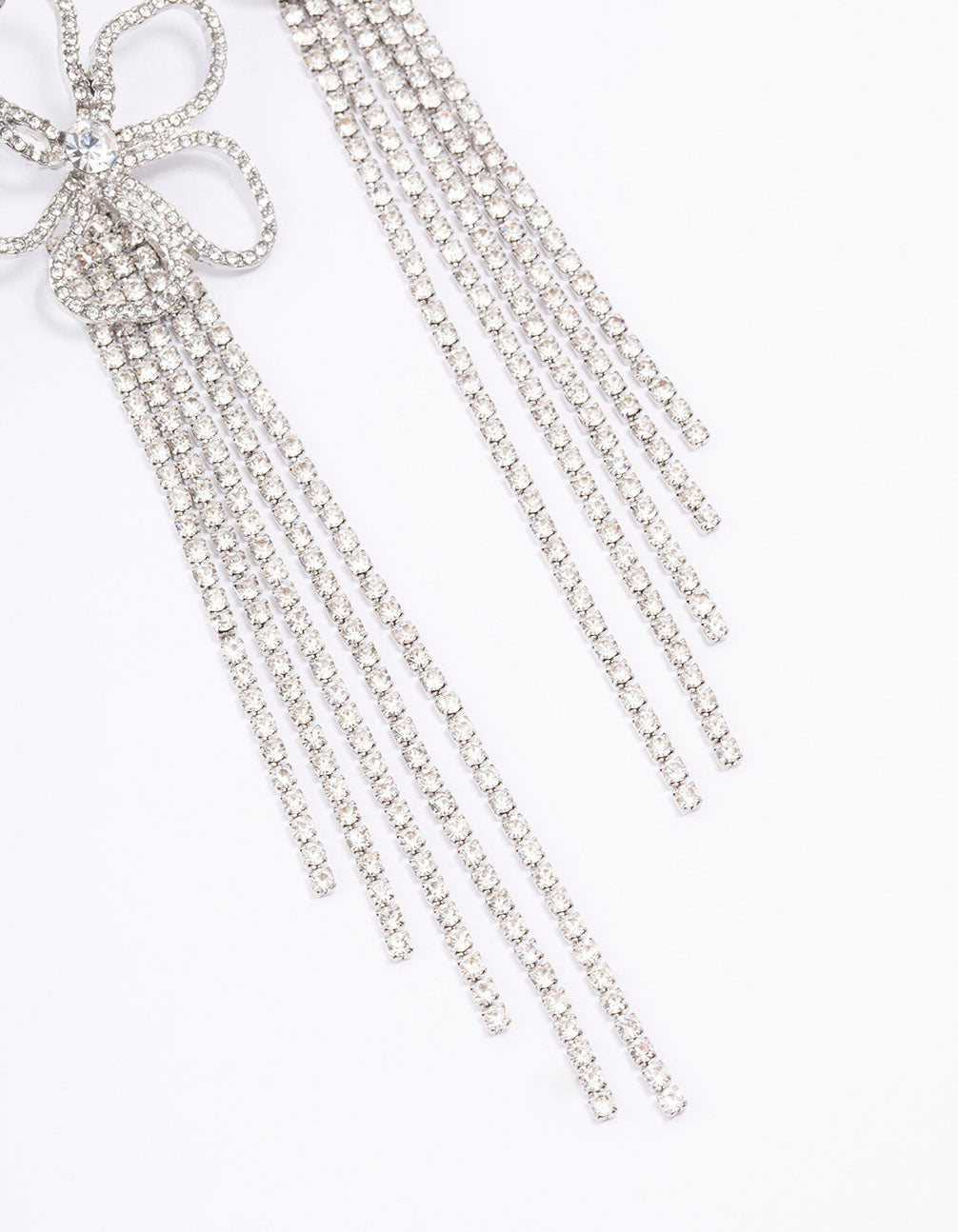 These drop earrings feature a collection of cascading diamantes adorned with dazzling florals at the top.