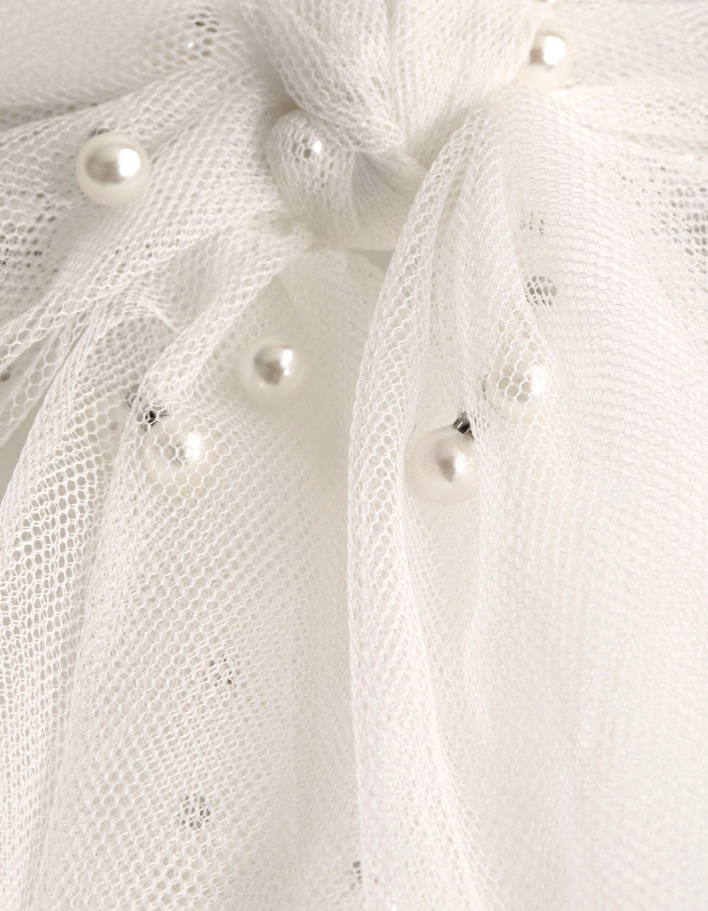 Wear soft statement pieces to complete your look! This pretty bow clips right into your hair! It's made from white mesh and it's studded with faux pearls. Very chic! Wear it to add a finishing touch to formal wear.
