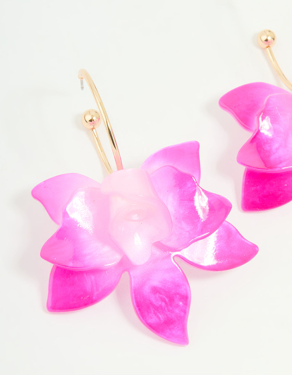 Pink Acrylic Orchid Hoop Earrings Pink Acrylic Orchid Hoop Earrings Pink Acrylic Orchid Hoop Earrings