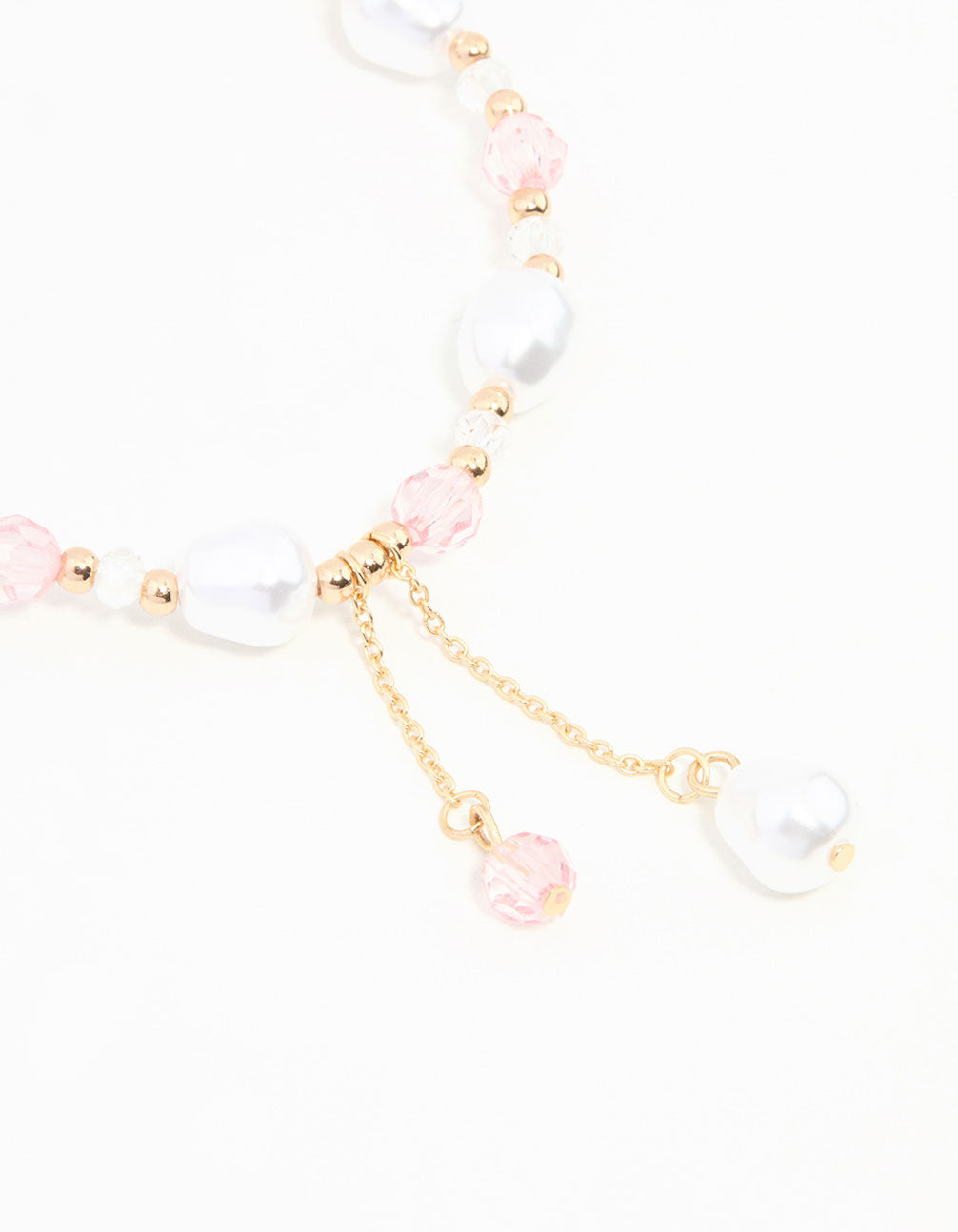 Pink & Gold Beads & Pearls Stretch Bracelet