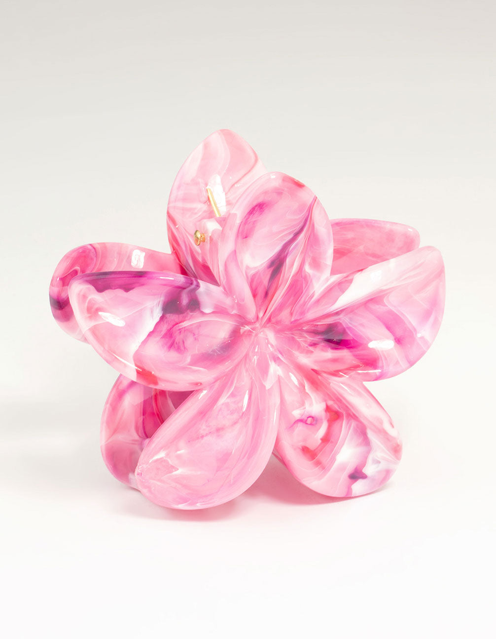 Add a touch of tropical charm to your hair with this Pink Marble Frangipani Claw Clip! This stylish hair accessory features a dreamy pink marble design inspired by frangipani flowers, making it a must-have claw clip for every occasion. Perfect for taming messy buns, securing half-up styles, or adding flair to ponytails, it's your go-to for both casual brunches and evenings out. Lightweight and easy to wear, this claw clip is ideal for quick, chic fixes or elevating your look. Pair it with a flowy dress for a boho vibe or with jeans and a tee for effortless cool. A true hair essential!