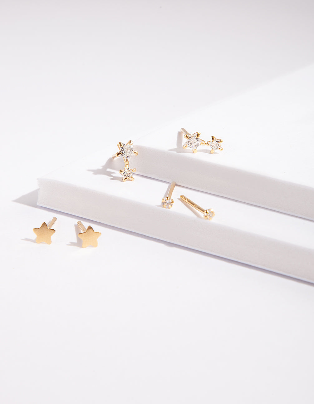 Gold plated sterling silver accessories are both reliable and fashionable. Complete your collection with high-quality, gold-plated pieces. This pack features three pairs of star-shaped studs.