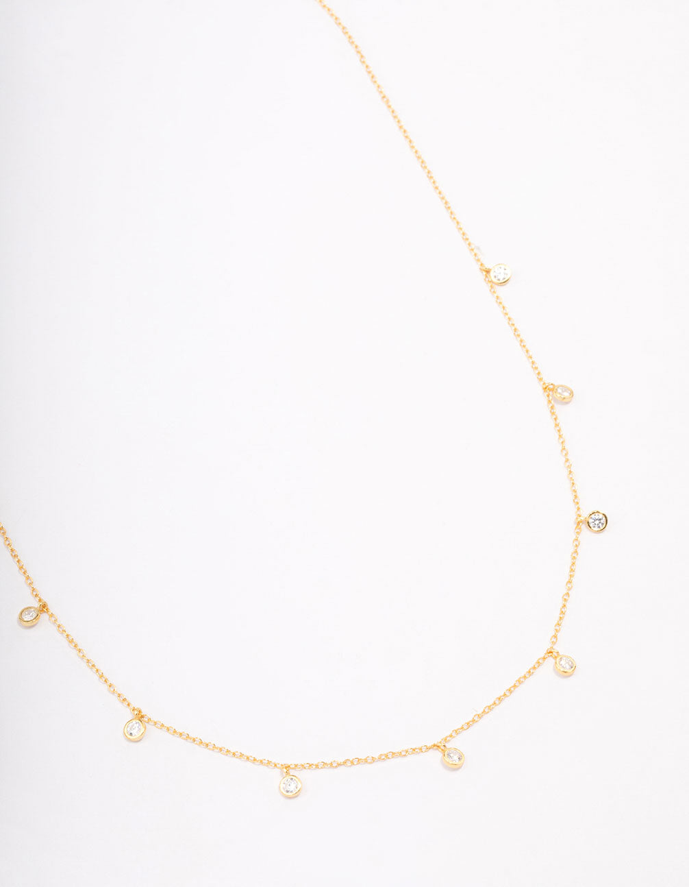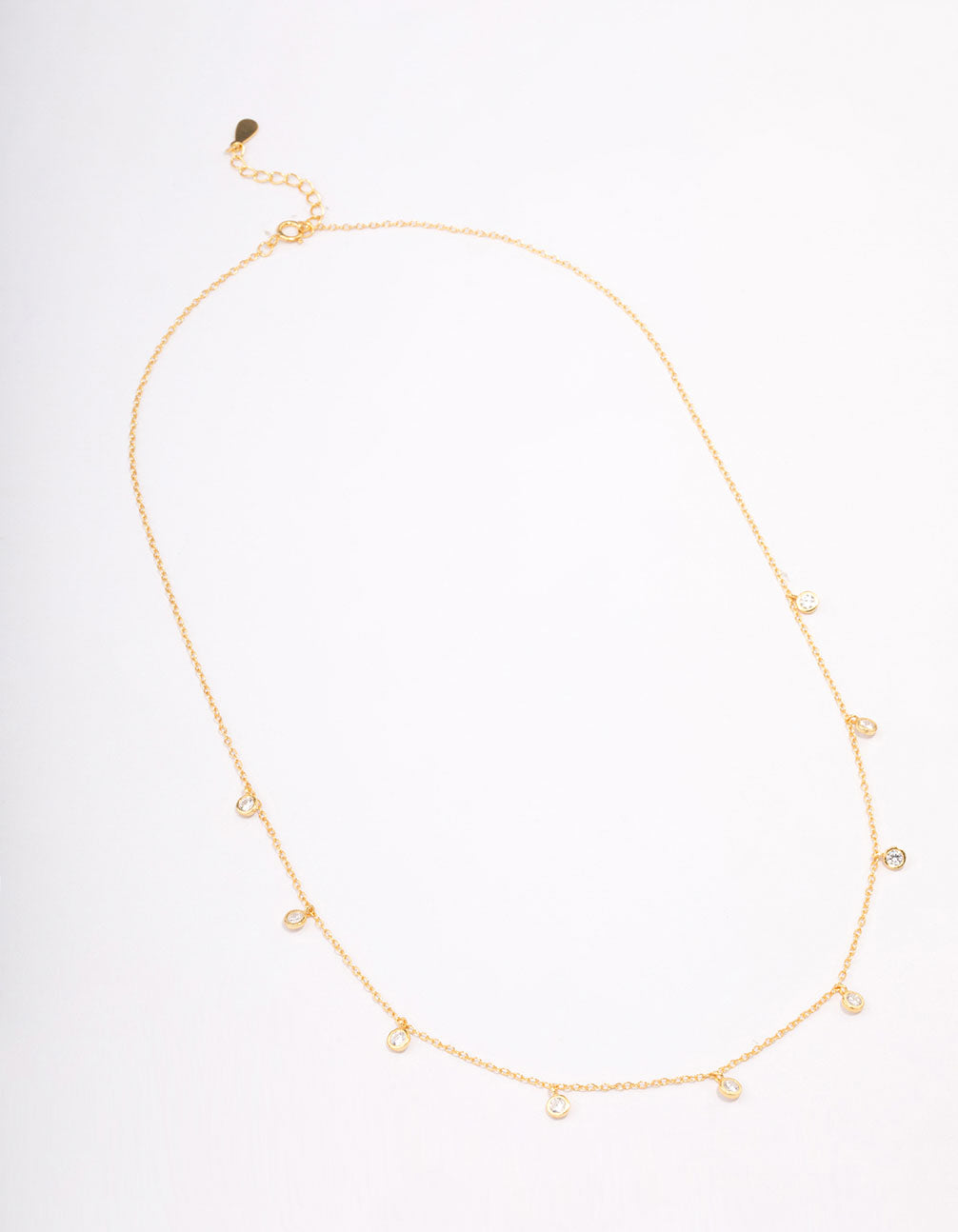 This gold plated sterling silver pendant necklace features a collection of cubic zirconia droplets for a dainty, glamorous finish to your look.