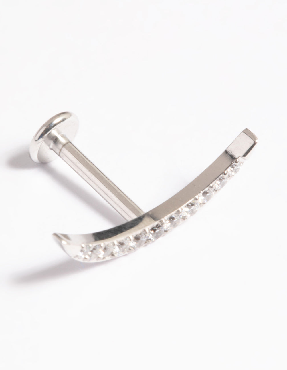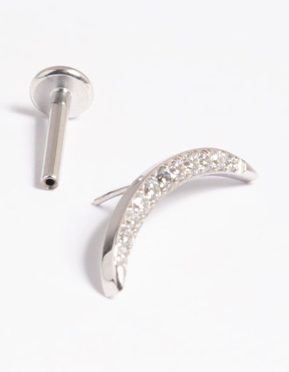 Platinum Plated Titanium Threadless Cubic Zirconia Half Moon Flat Back Pack