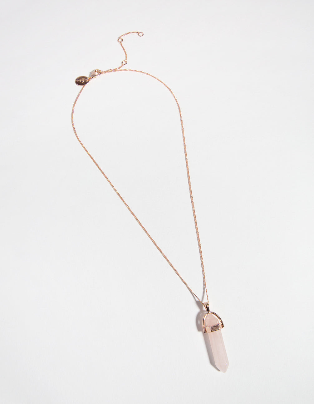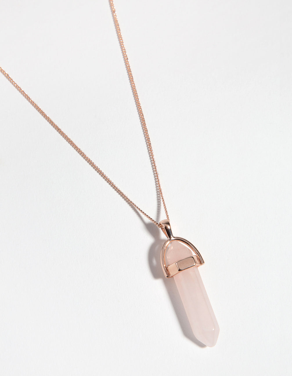 Rose on rose. This rose-gold-plated necklace features a large rose-quartz pendant. Rose quartz, with its dreamy pink colour, is said to bring commitment and caring.