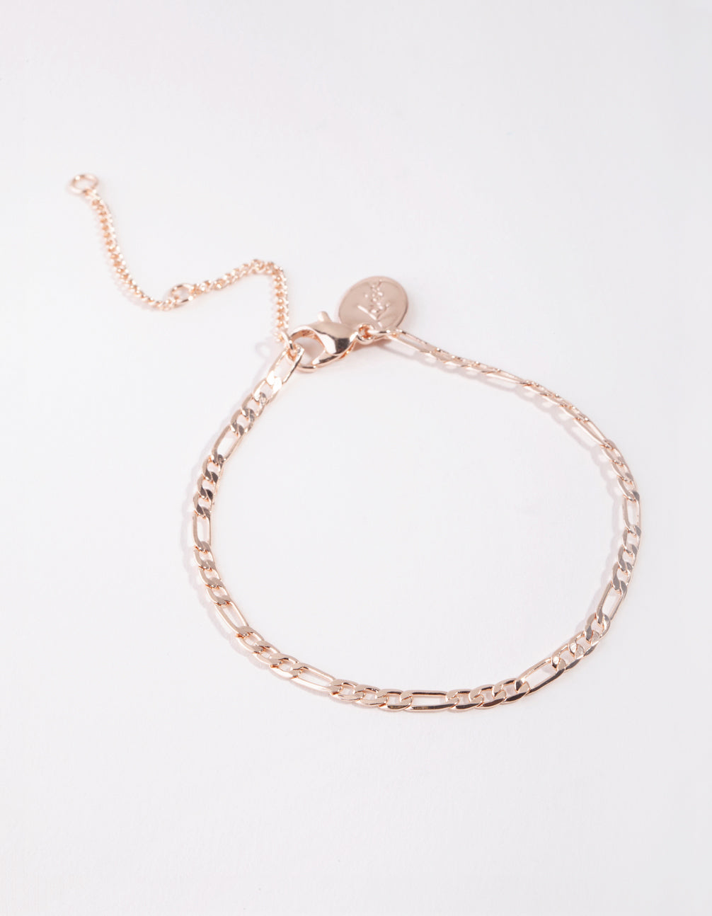 You're precious, so you deserve precious metals. This figaro chain bracelet is plated with real rose gold. Wear it to elevate your daily ensembles and add a touch of luxury to your look.