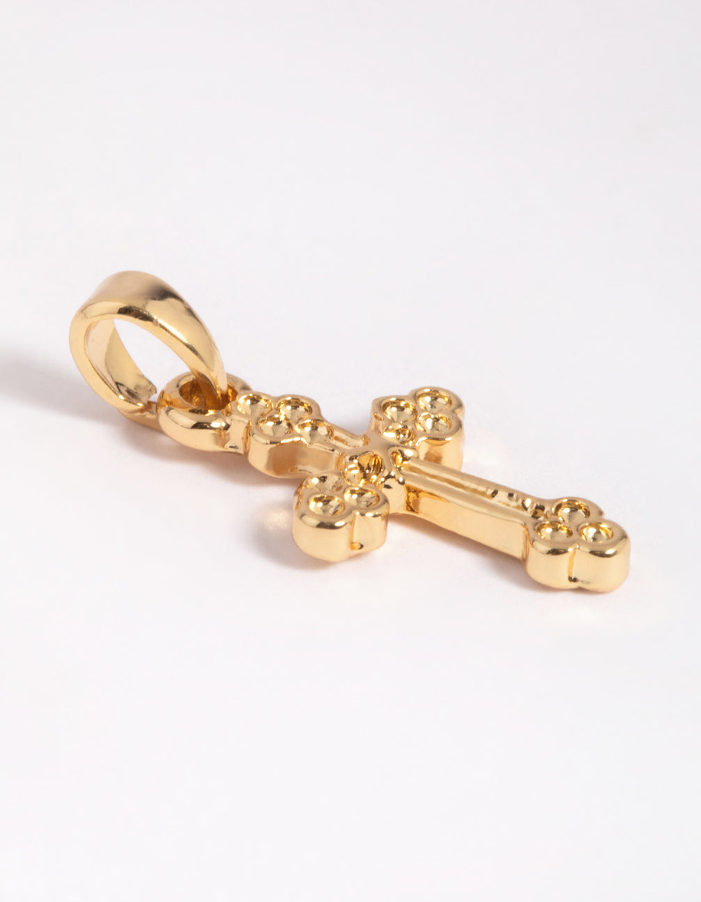 Turn on the charm and customise your chains with dainty pendants! This cute charm is plated with genuine gold for authentic lustre and shine. It features an ornate cross design. Mix and match multiple charms to make a special necklace or bracelet just for you!