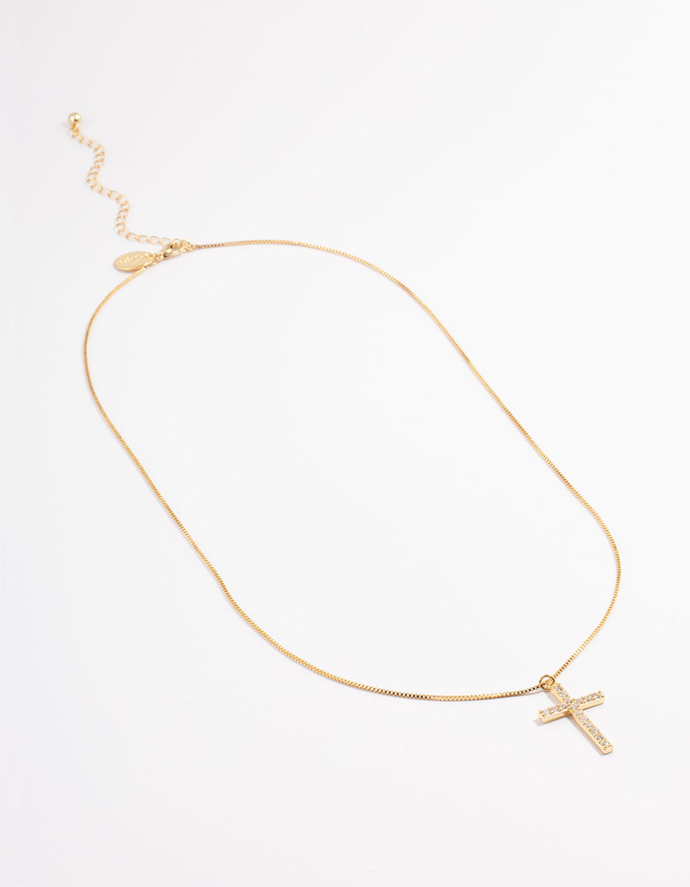 - Style our gold plated diamante cross fine chain necklace with some simple gold huggie hoops for a signature finish.