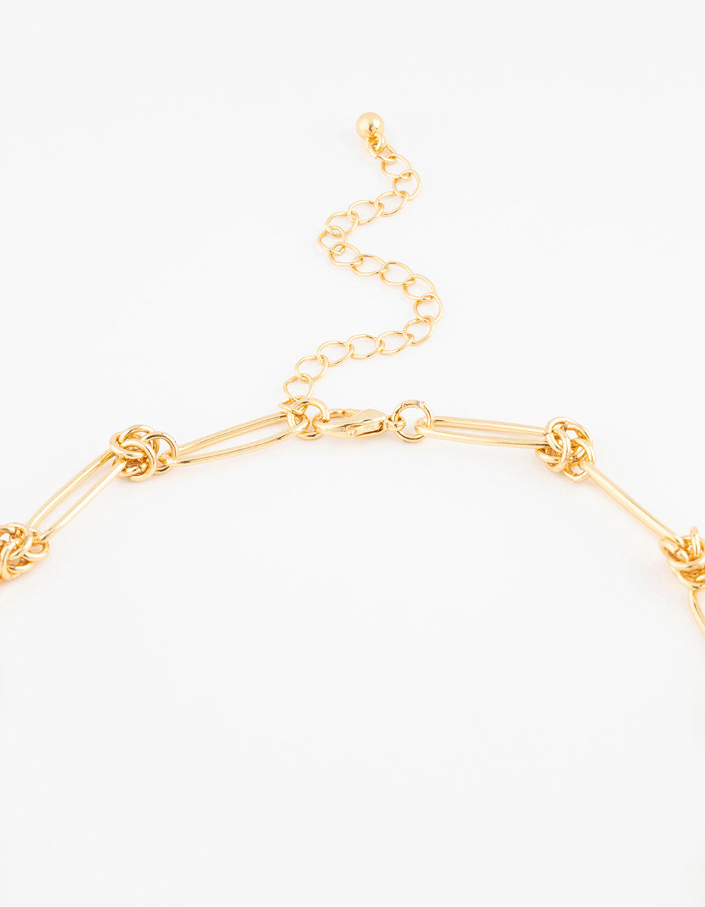 This gold plated pendant necklace features a timeless chain adorned with a looped, interlaced design for a modern finish to your look.