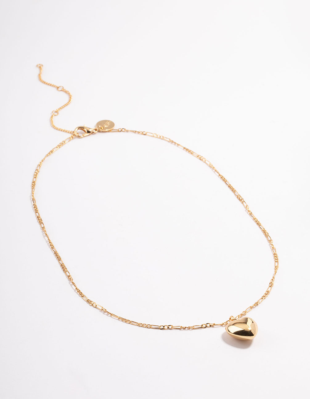 Gold Plated Puffy Heart Figaro Necklace Gold Plated Puffy Heart Figaro Necklace Gold Plated Puffy Heart Figaro Necklace