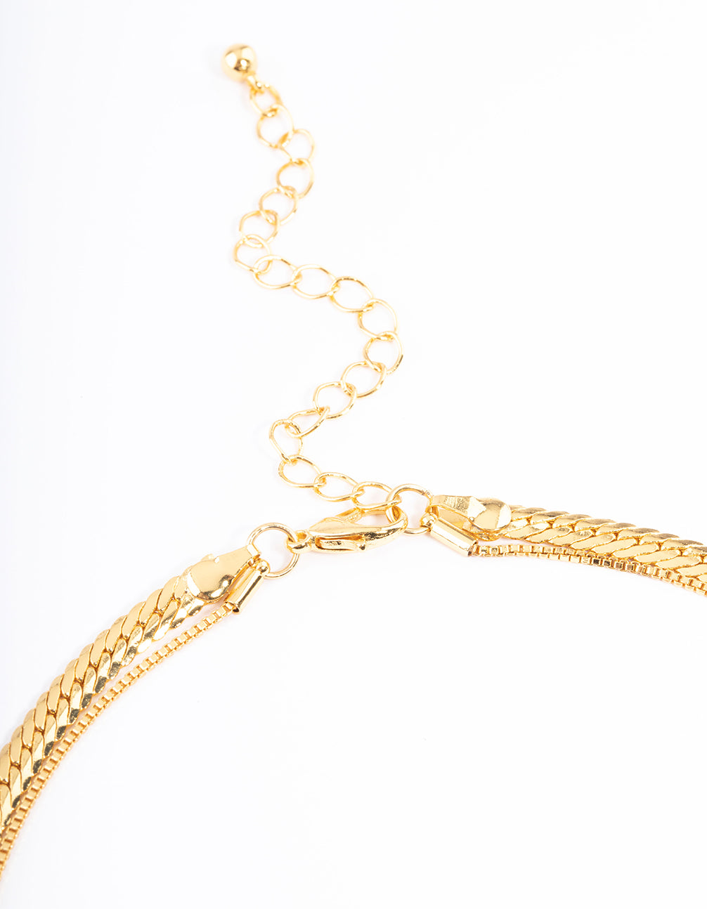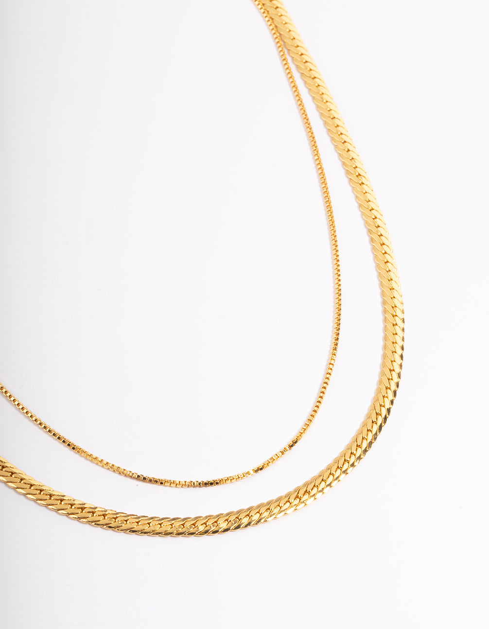 Gold Plated Small & Medium Mix Chain Two Layered Necklace