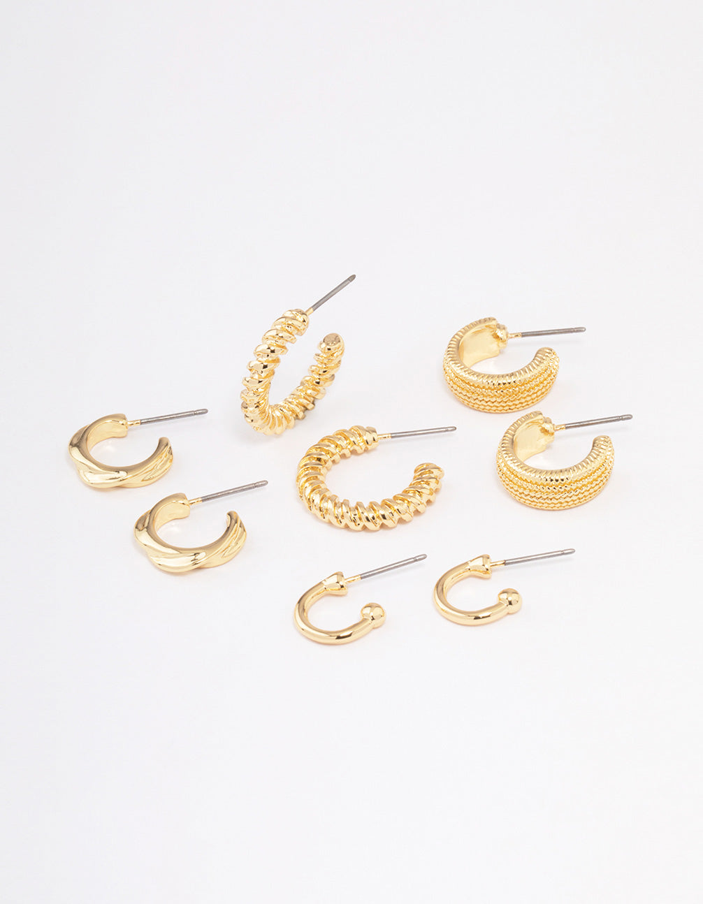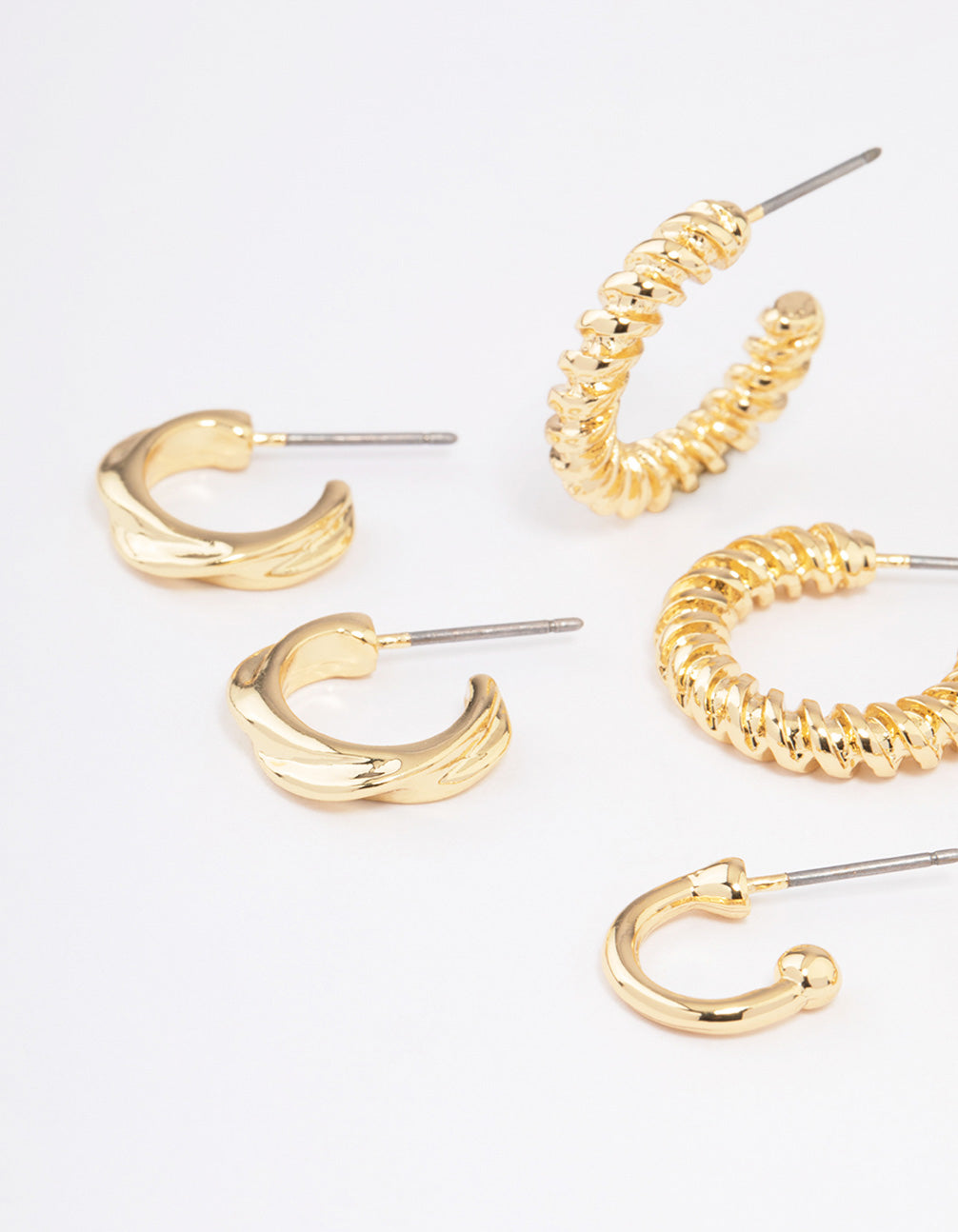 Gold Plated Textured Chunky Hoop Earrings 4-Pack