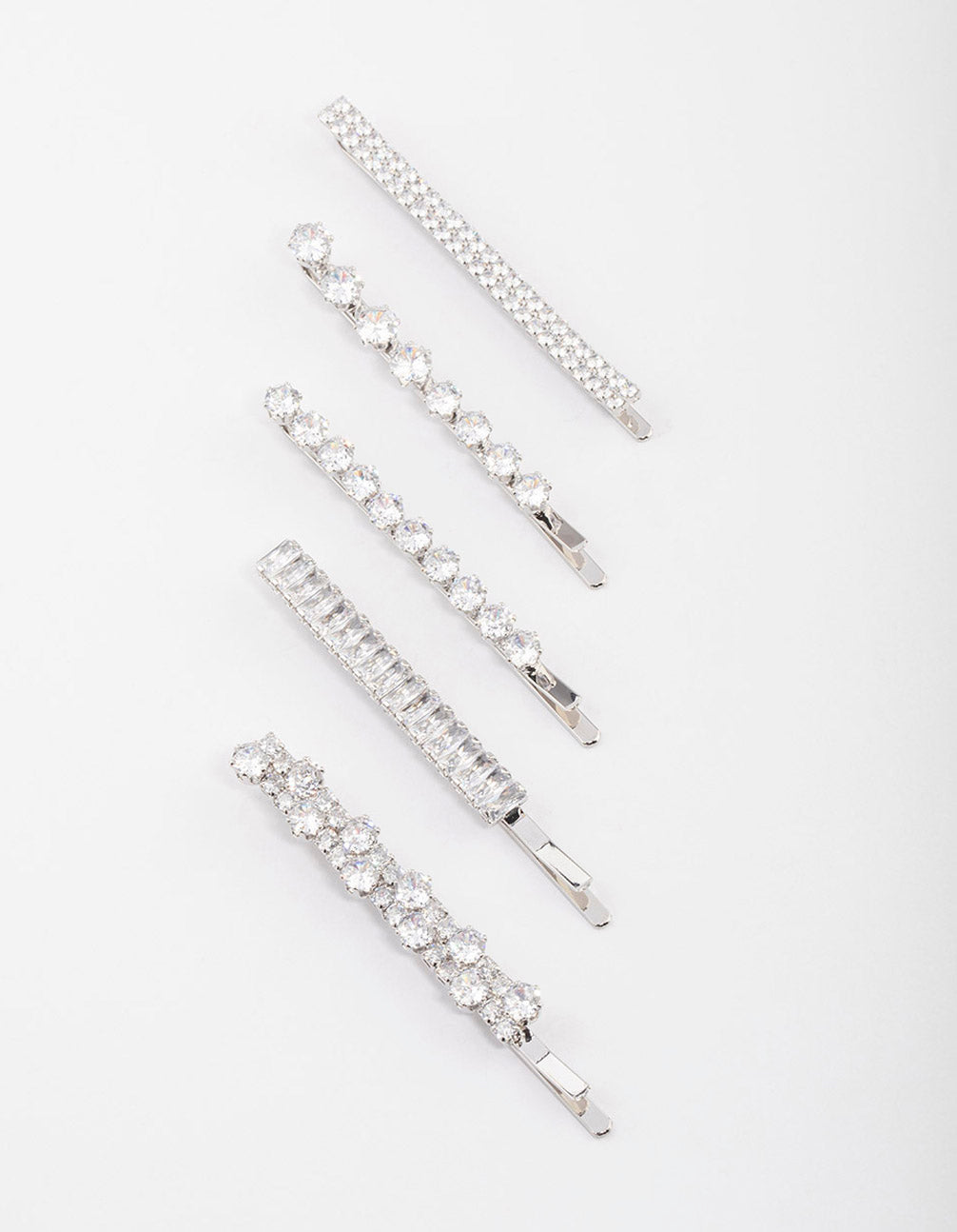 Silver Cubic Zirconia Mixed Stone Hair Clips 4-Pack