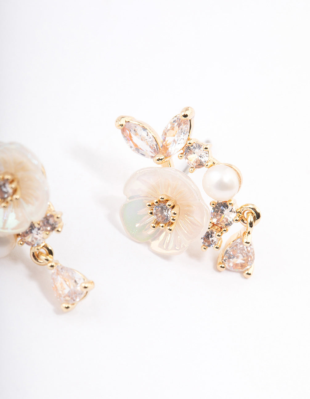 • Gold Plated Cubic Zirconia Floral Detailed Pearl Earrings - link has visual effect only
