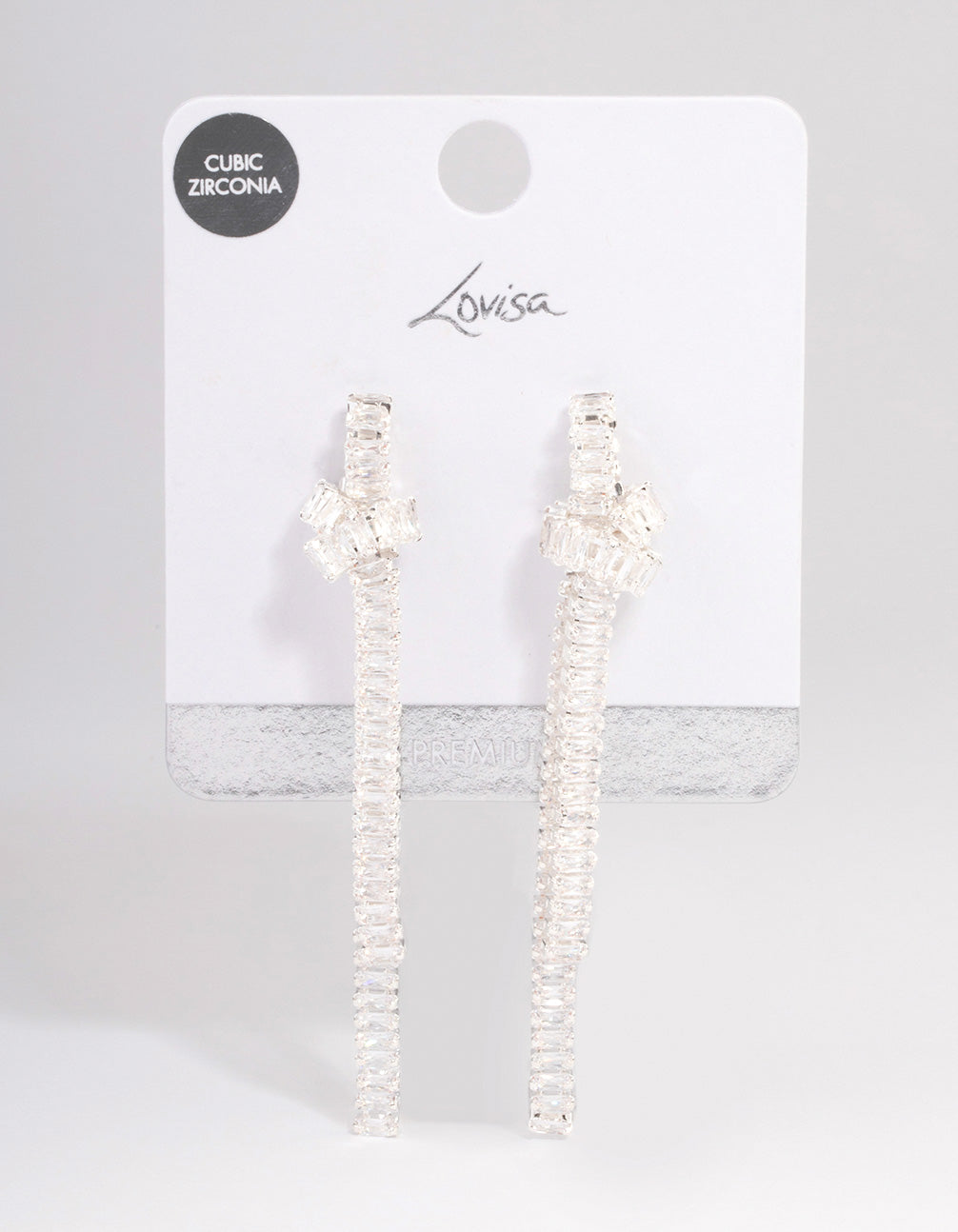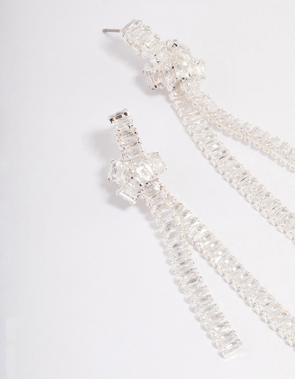 Silver Plated Cubic Zirconia Baguette Knot Drop Earrings