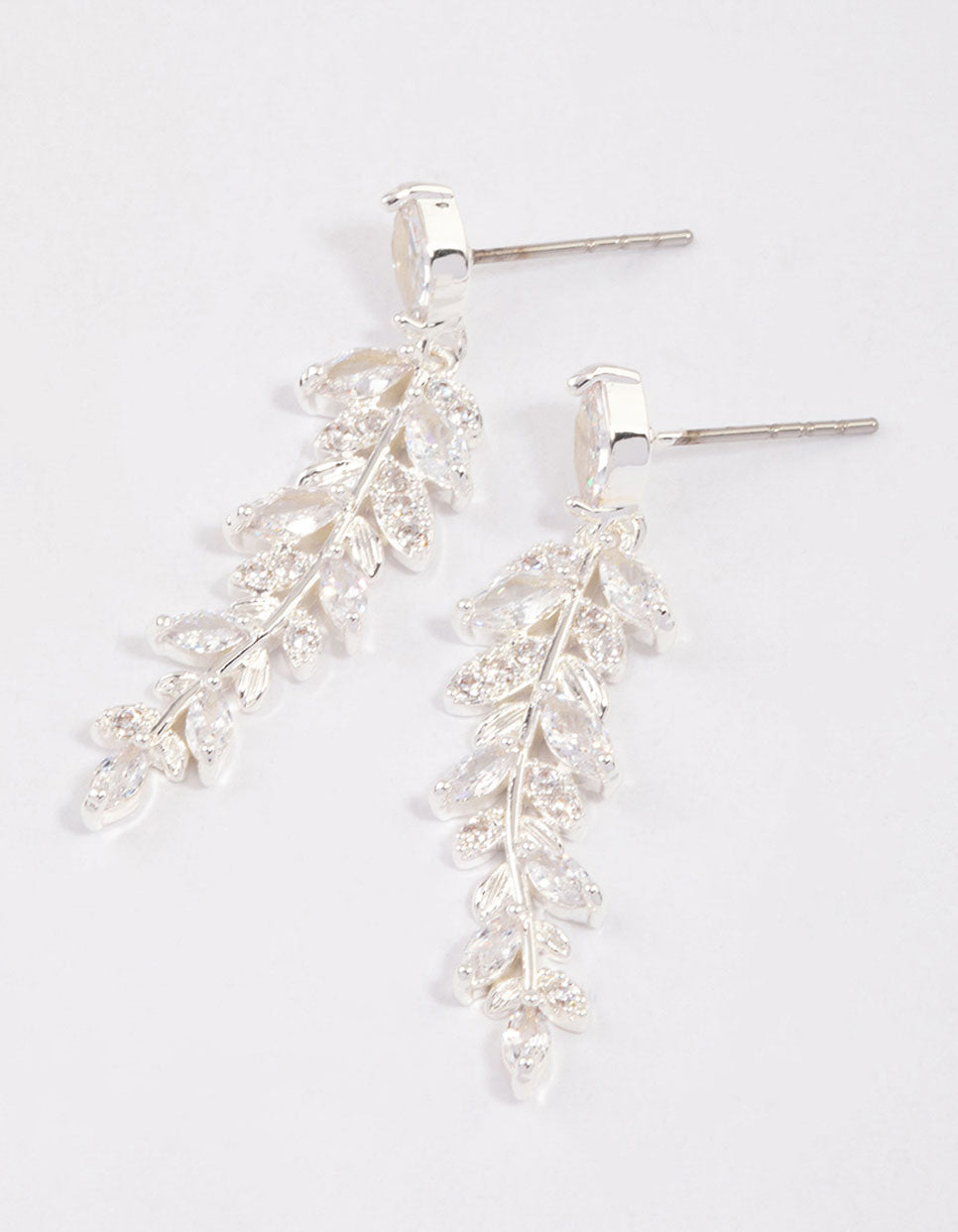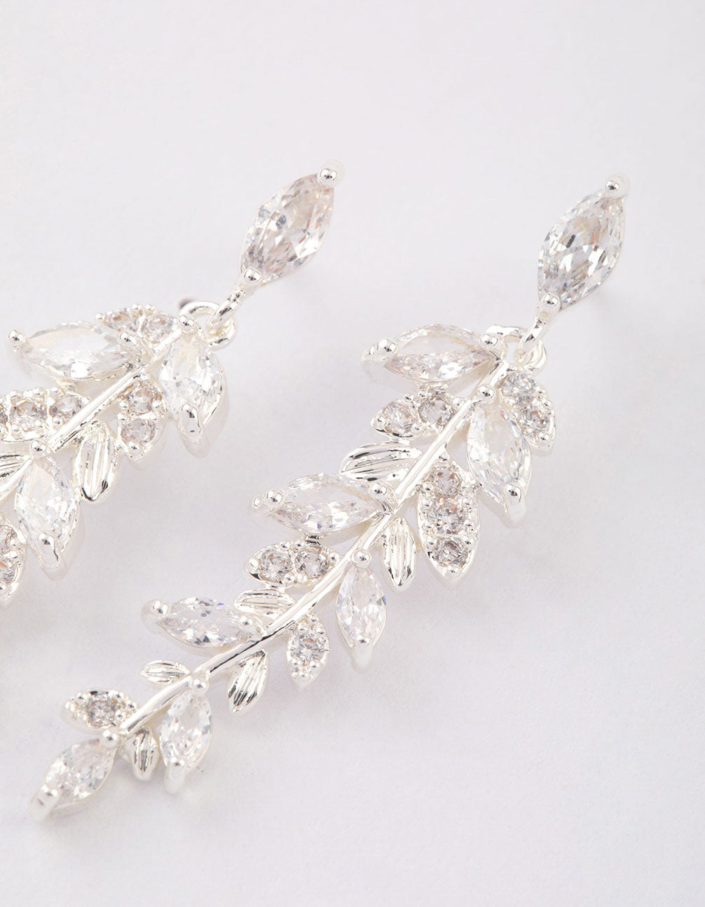- These silver plated earrings feature a dainty leaf design from cubic zirconia crystals for a sophisticated finish.