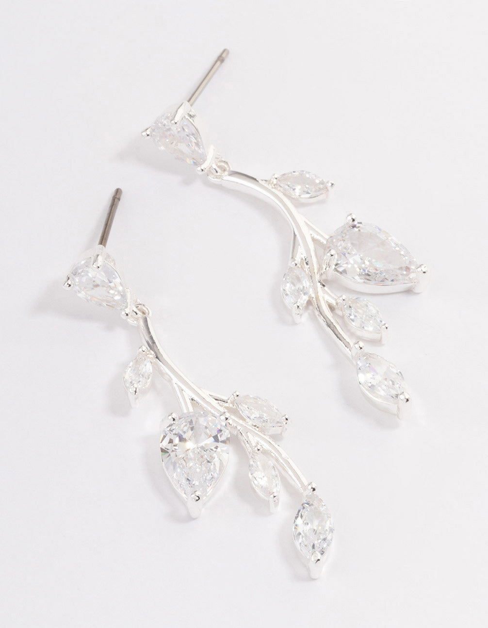 These silver, cubic zirconia fern drop earrings are perfect for brides and bridesmaids on the big day.