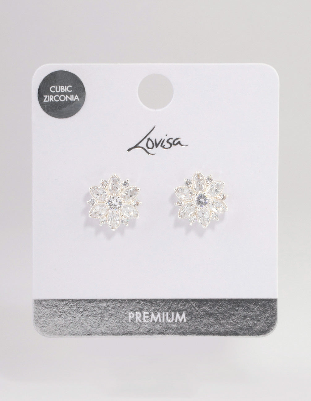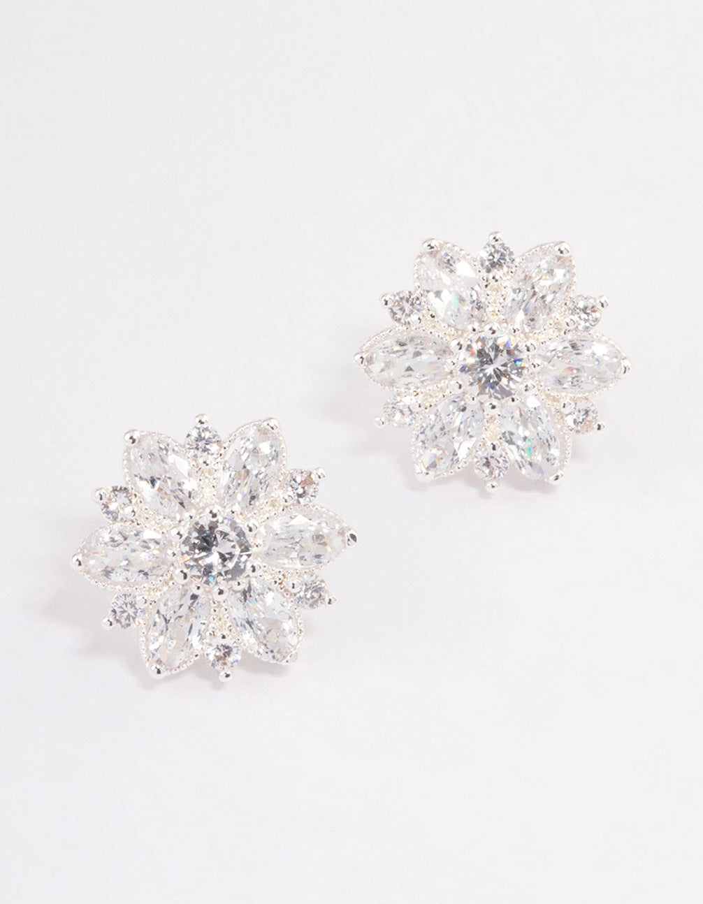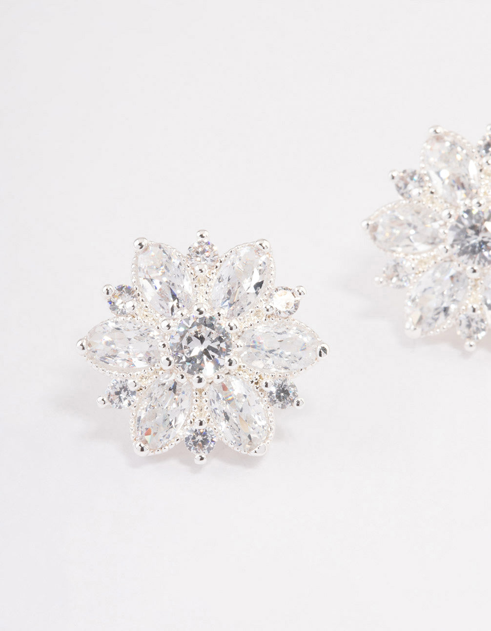 Silver Plated Cubic Zirconia Flower Stud Earrings