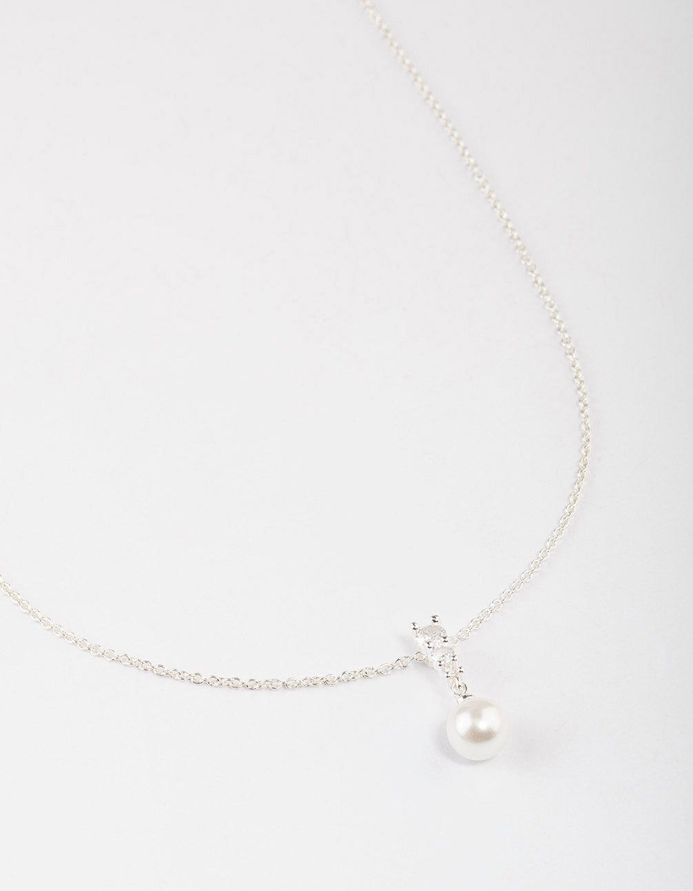 Silver Plated Cubic Zirconia Freshwater Pearl Pendant Necklace