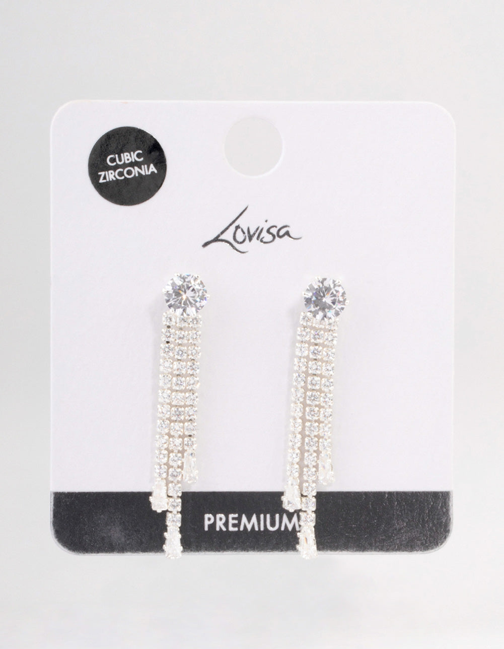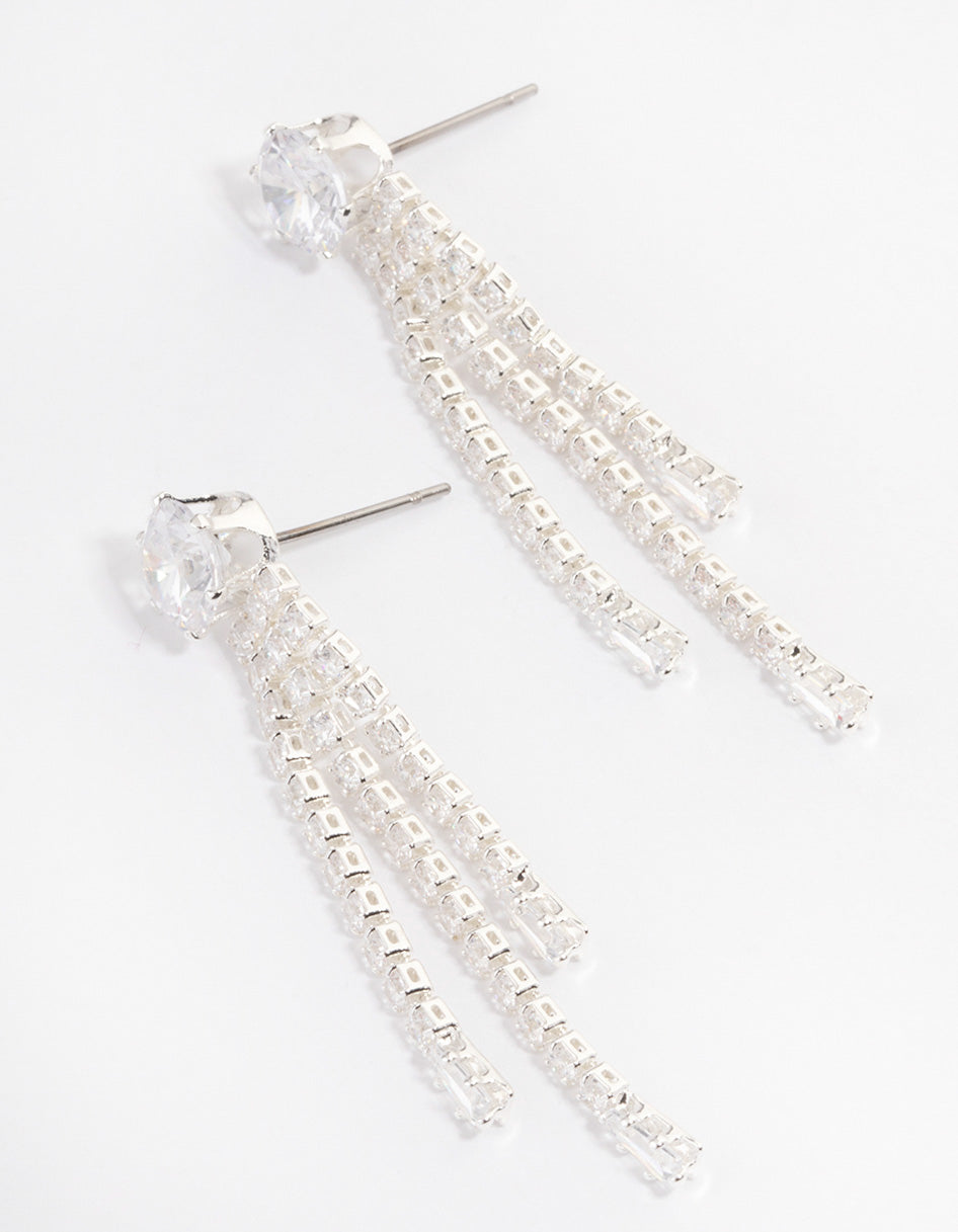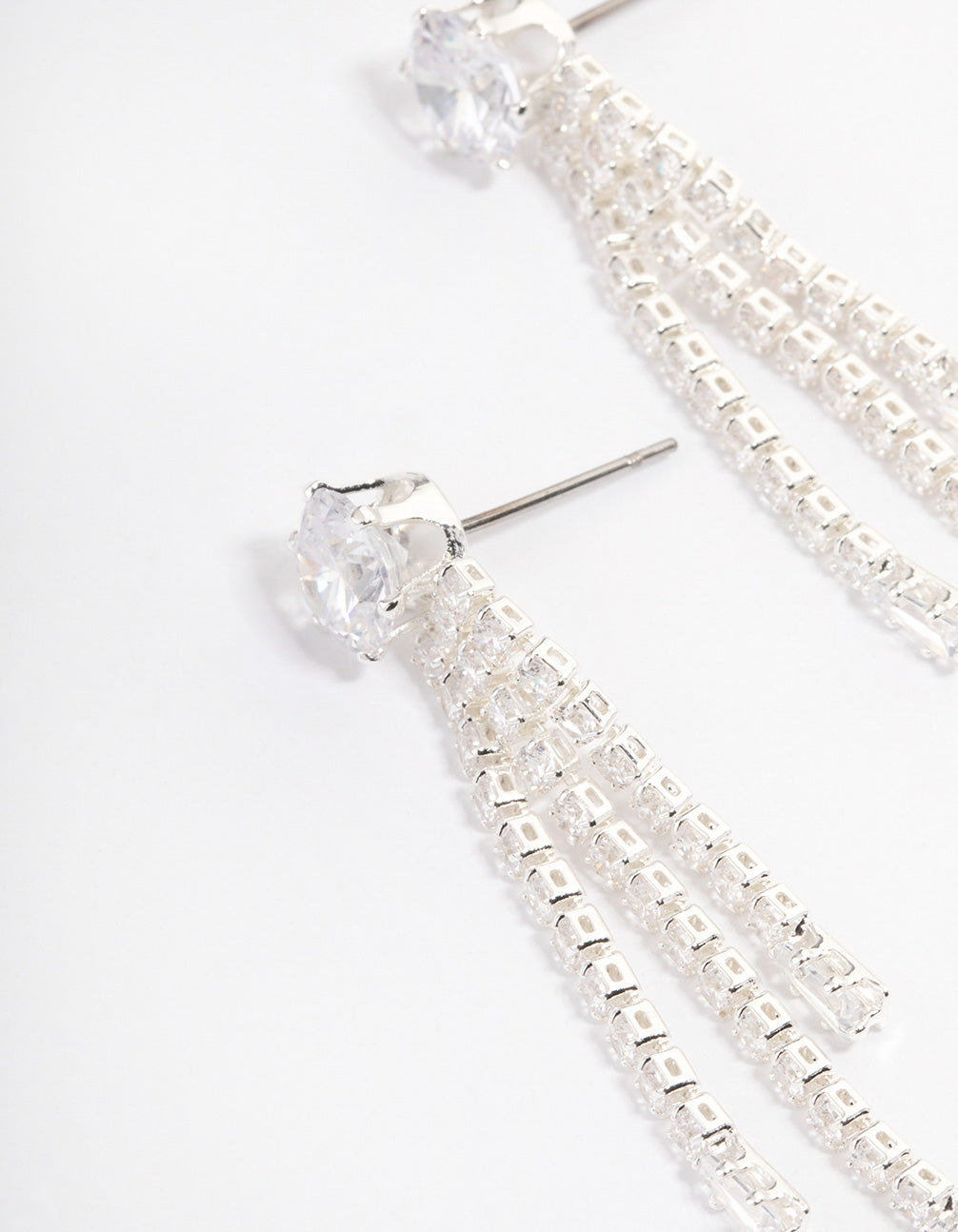 Silver Plated Round Cubic Zirconia Cupchain Drop Earrings