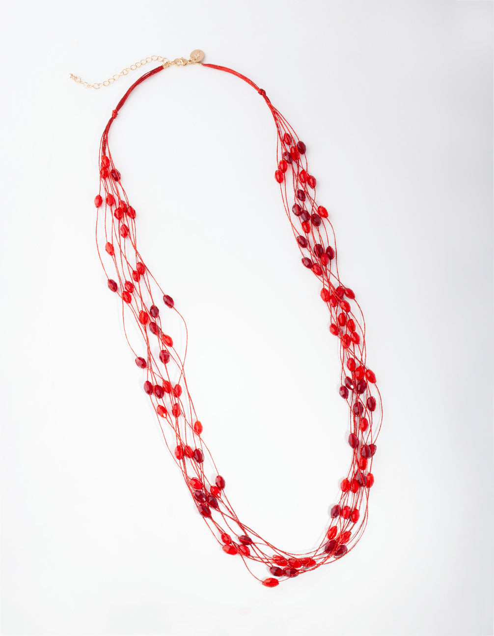 Red Multi-Row Bead Necklace Red Multi-Row Bead Necklace Red Multi-Row Bead Necklace