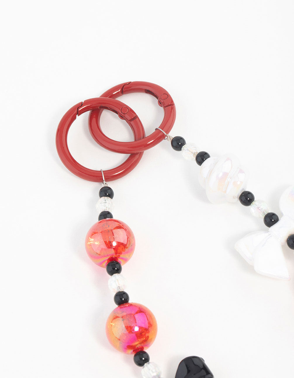Red, White & Black Pearl & Bow Heart Keychain Red, White & Black Pearl & Bow Heart Keychain Red, White & Black Pearl & Bow Heart Keychain