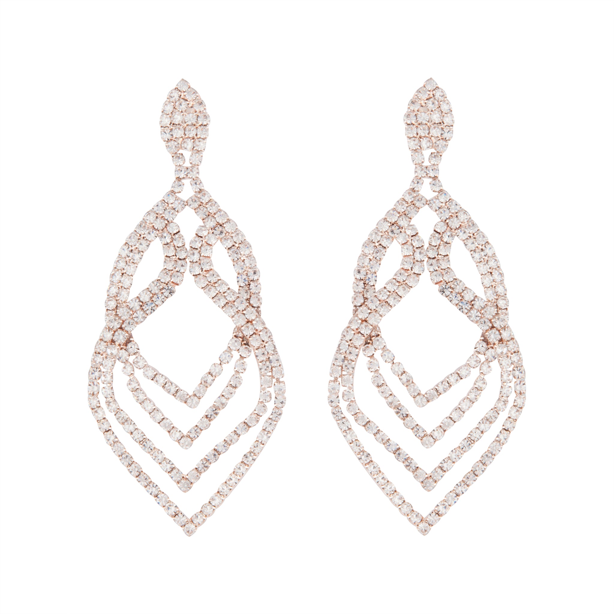 Keep it classy in these tiered drop earrings with an embellished rose gold tone.
