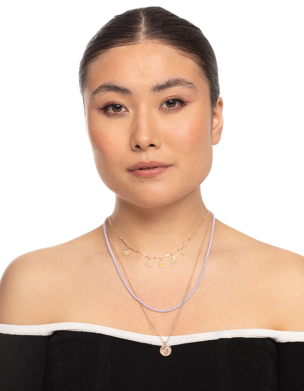 Rose Gold Daisy Butterfly Multi Row Necklace