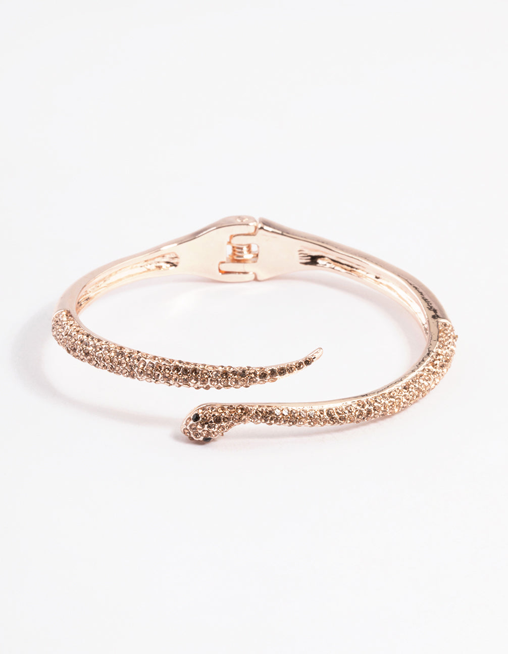 Crafted with a diamanted, hinge band — this snake motif bracelet is a sure to gain you a compliment, or two!