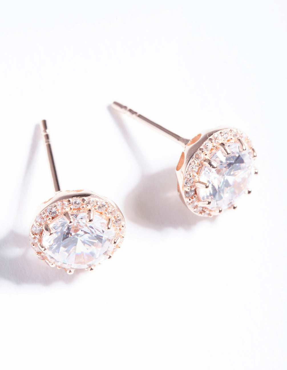 Rose Gold Plated Sterling Silver Cubic Zirconia Stud Earrings