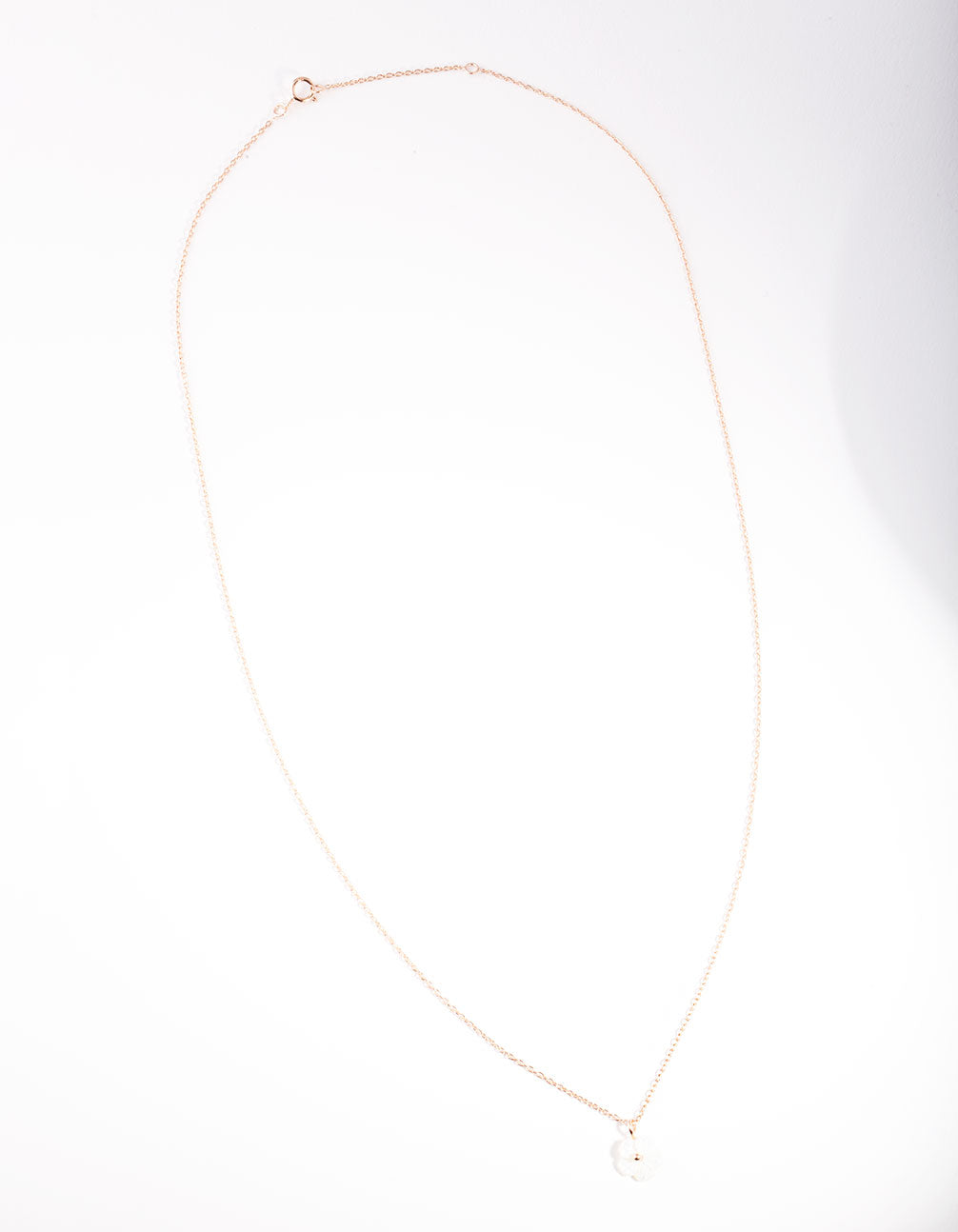 When pearl meets rose gold! This rose-gold-plated fine chain necklace features a small pearl flower pendant and adjustable chain.