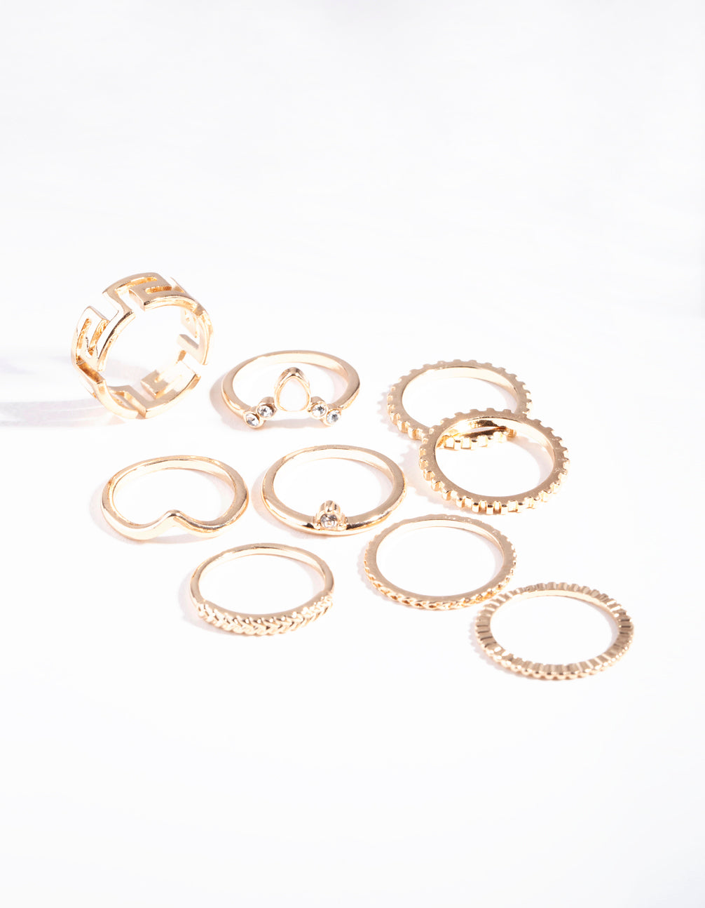 A ring pack is the perfect way to add a statement to your look. This design comes with a gold-toned setting and cut-out key motif.