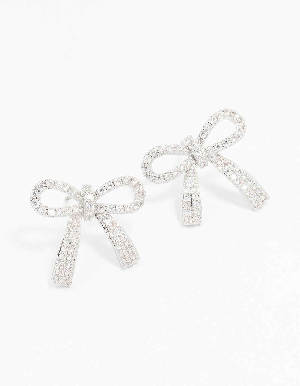 Add flirty flair with these coquette-inspired earrings. Crafted from durable silver and adorned with glamorous cubic zirconia crystals in a trendy bow design, they're perfect for charming up your look.