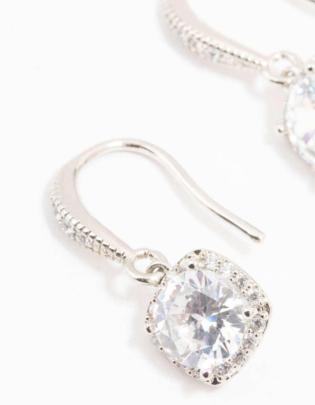 Silver Cubic Zirconia Square Drop Earrings