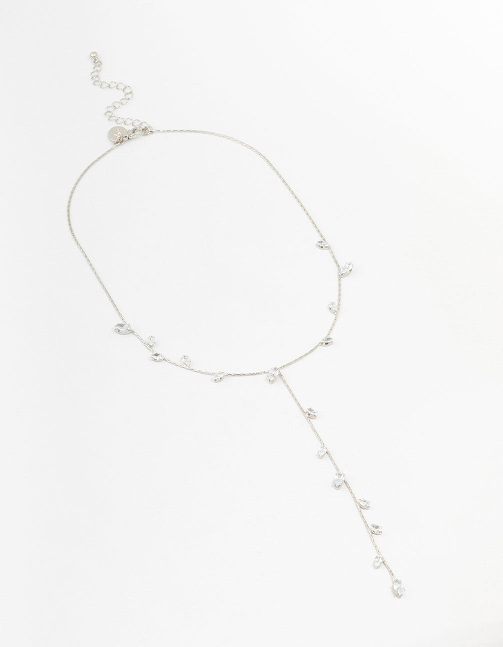Silver Cubic Zirconia Vine Leaf Y-Necklace