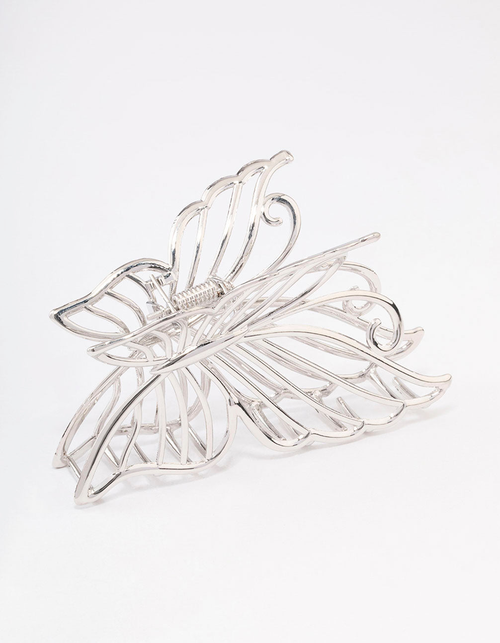 Claw clips from the '90s are trending! Elevate your up-do with this sleek, silver butterfly claw clip. This hair accessory features an intricate, whimsical design, perfect for adding interest to your hairstyle.
